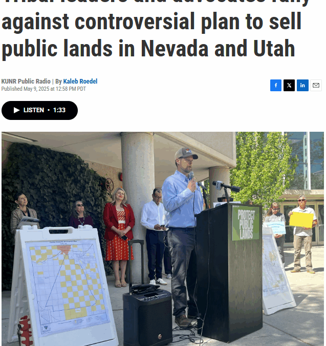 More than a dozen elected officials, tribal leaders and activists held a press conference Thursday in Reno to condemn U.S. Representatives Mark Amodei of Nevada and Celeste Maloy of Utah. Those members of Congress introduced the last-minute measure to sell off 10,000 acres near the tourist town of St. George, Utah, and nearly 450,000 acres outside of Reno and Las Vegas.